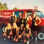 Det stora vinröda bensinslukande monstret bakom de åtta på bilden står inte där bara en slump, utan det var alltså en bil som sponsorn VBB Viak tillhandahöll under dagarna i Norrbotten för att förenkla resandet mellan Boden, där vi alla bodde, och Luleå, där hälften av oss tävlade.